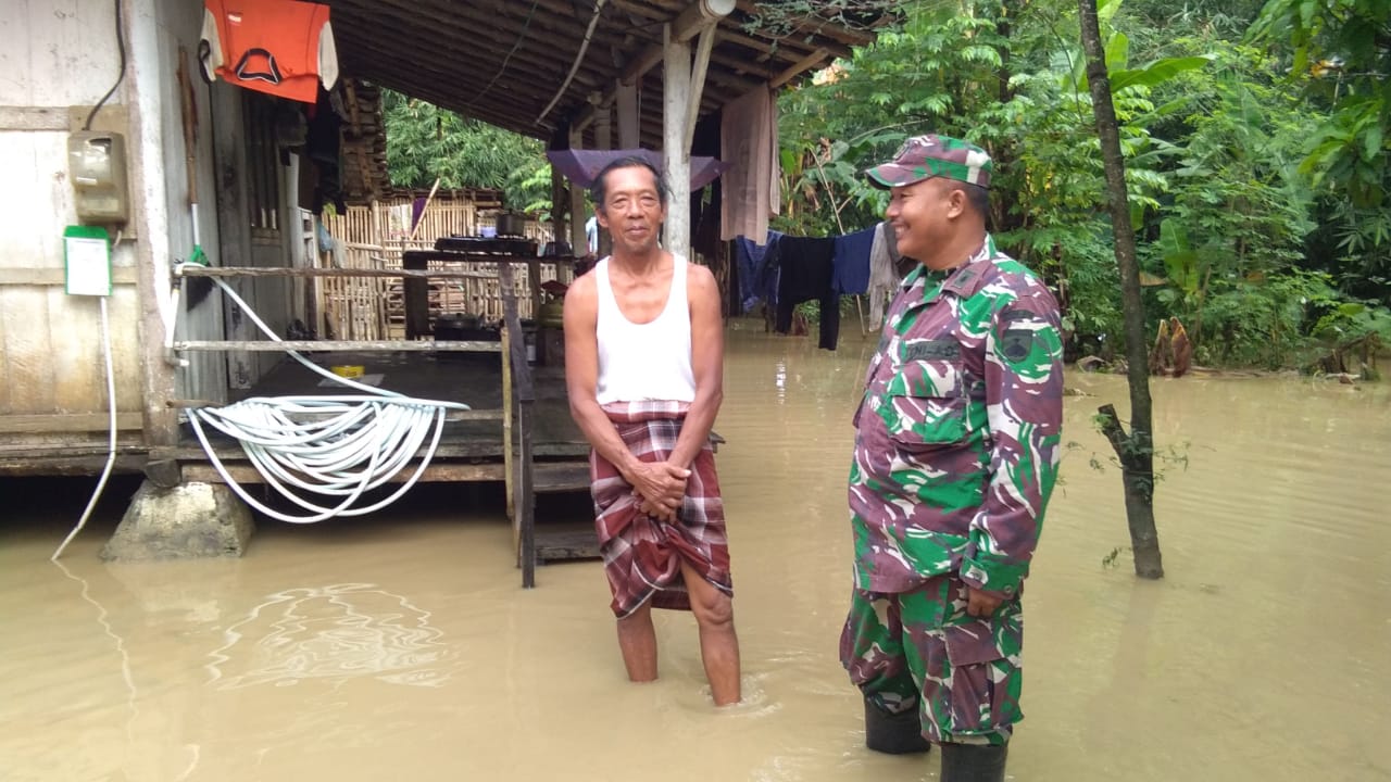 Metropos.id,Demak – Danpos Ramil Kebonagung Kodim 0716/Demak Peltu Satir bersama Muspika Kebonagung turun ke wilayah untuk mengecek kondisi air limpasan dari sungai Tuntang yang menggenangi Dukuh Gedangan Desa Pilangwetan Kecamatan Dempet, Jum’at (5/4/2019).