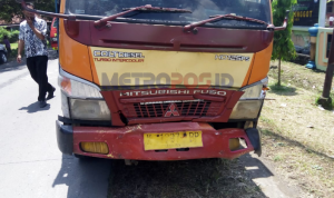 dengan KBM Jenis Truk jenis Colt Diesel Mitsubishi Fuso bernopol K 1937 BP di Desa Monggot Kecamatan Geyer, Senin (15/4/2019).