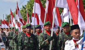 Metropos.id,Demak – Ratusan peserta yang terdiri dari TNI, Polri, Ormas dan pelajar mengikuti Apel Kebangsaan dan Kirab Merah Putih yang dilaksanakan Lapangan Desa Wonowoso Kecamatan Karangtengah,Selasa (30/4/2019).