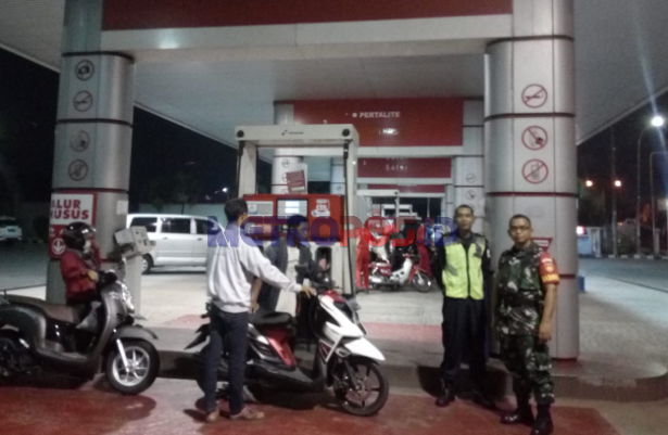 Babinsa Koramil 04/Teras Kodim 0724/Boyolali Serma Khoirul Anam bersama Anggota Polsek Teras melaksanakan kegiatan Patroli bersama di wilayah binaan termasuk SPBU Kecamatan Teras mulai pukul 21.00 Wib, Senin (20/05/2019).