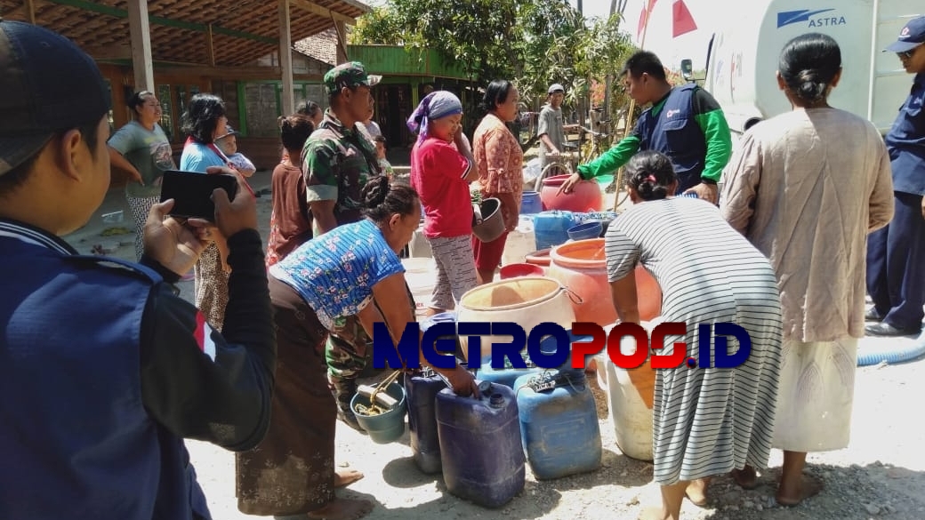 METROPOS.id, Grobogan – Kekeringan yang melenda beberapa daerah di wilayah Kabupaten Grobogan kini sudah mulai dirasakan dampaknya oleh sebagian masyarakat, melihat kondisi yang dirasakan demikian PMI Grobogan yang dampingi Babinsa Serda Suyatno melaksanakan droping air bersih kepada warga di Desa/Kecamatan Gabus, Rabu (31/7/2019).