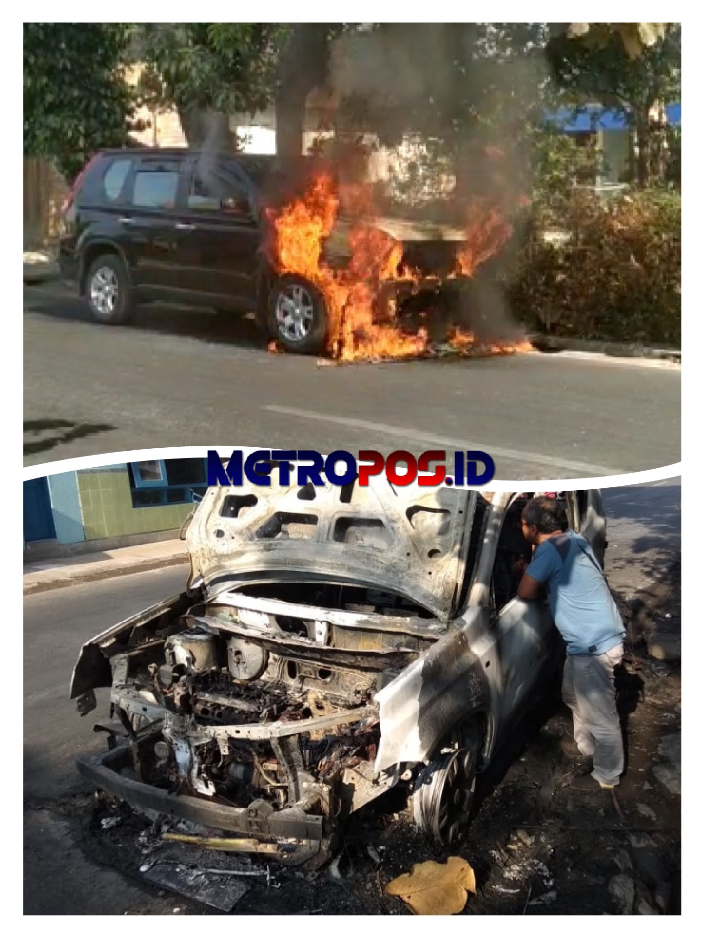 “Setelah saya liat di bagian depan sudah ada asap dan nyala api yang membakar bagian depan kap mobil,” tuturnya.