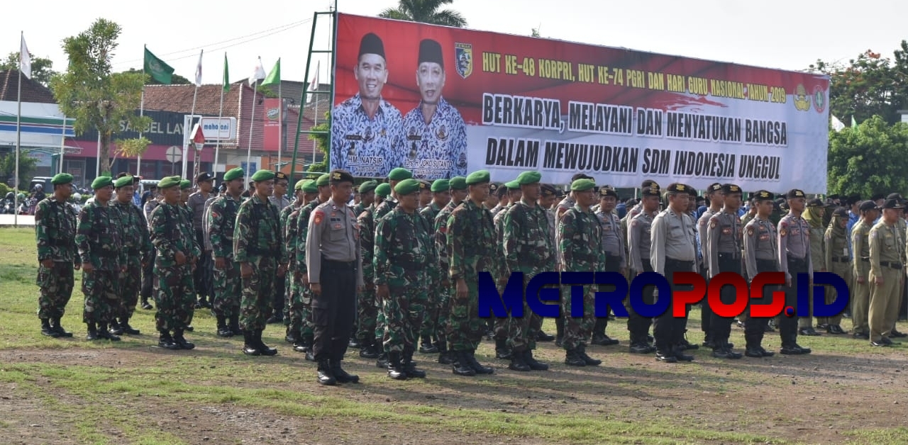 METROPOS.id, Demak – Kepala Staf Kodim 0716/Demak (Kasdim) Mayor Inf Kadarusman mewakili Dandim menghadiri Upacara peringatan HUT PGRI Ke-74 dan Hari Guru Nasional serta Upacara HUT Korpri ke-48 Tahun 2019 di Alun – Alun Simpang Enam Demak, Jumat, (29/11/19).