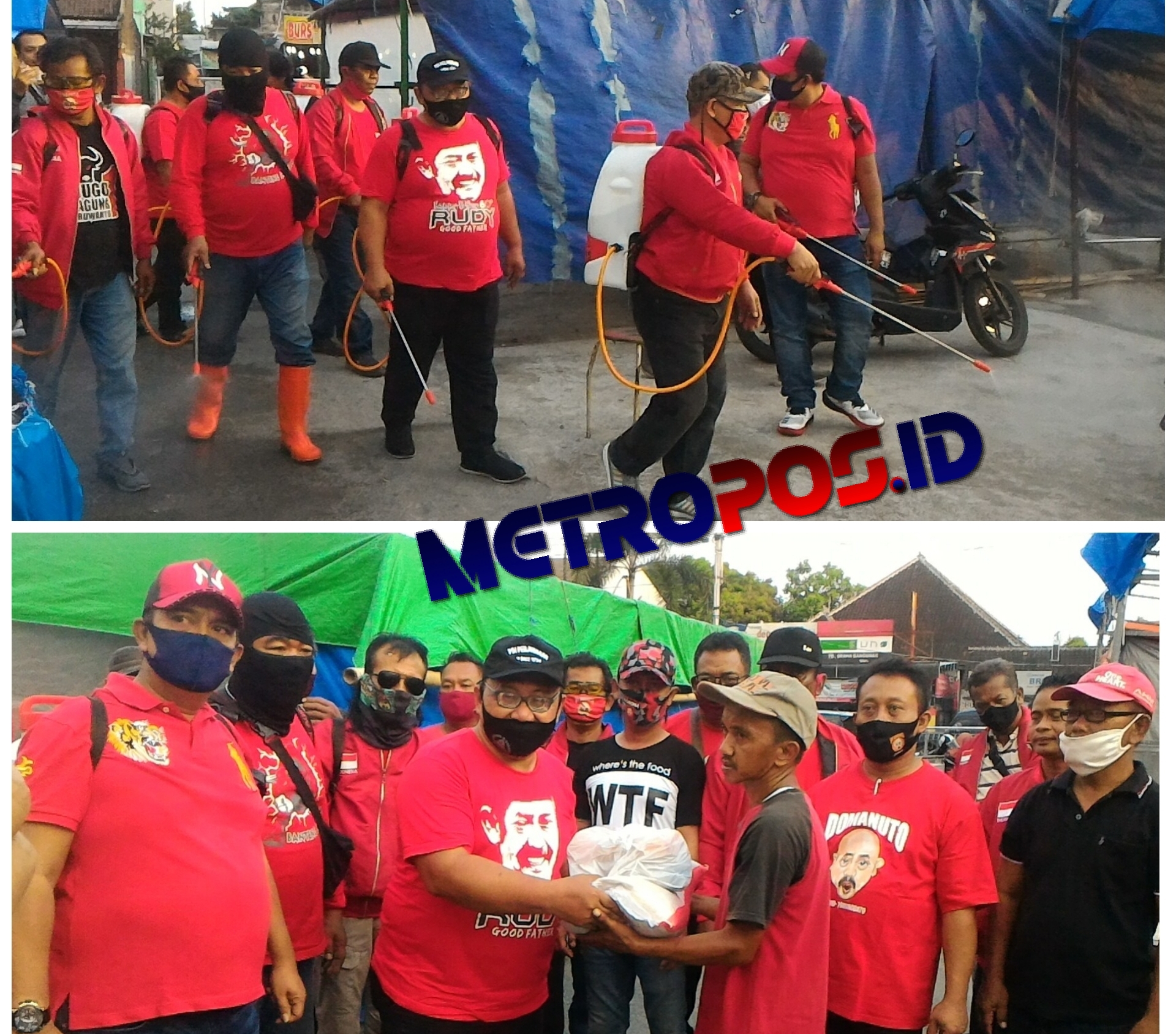 METROPOS.ID, SOLO – Gabungan 4 elemen relawan pendukung pasangan calon Walikota dan Wakil Walikota Solo dari DPC PDIP Solo, Achmad Purnomo – Teguh Prakosa (Puguh) menggelar aksi bakti sosial (baksos) penyemprotan disinfektan ke sejumlah fasilitas publik dan membagikan bantuan sembako, Minggu (12/7/2020) sore.