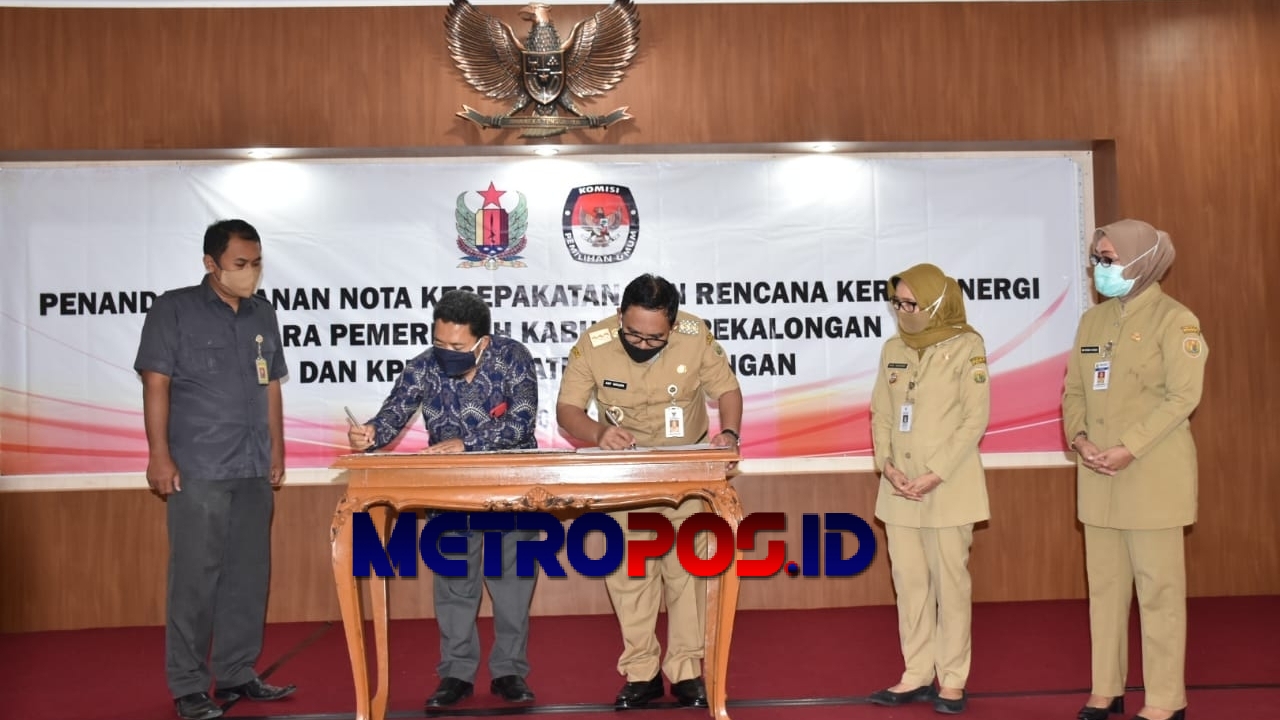 METROPOS.ID, KAB. PEKALONGAN – Pemkab Pekalongan dan KPU Kab. Pekalongan melaksanakan perjanjian kerjasama penandatanganan nota kesepakatan rencana kerja sinergi di aula lantai I Setda, Senin (20/7/2020).