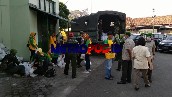 Paket Sembako dan sayuran yang akan di distribusikan ke dua titik tersebut di angkut menggunakan Truk Milik Kodim 0733/BS SMG.