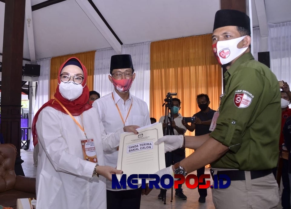 METROPOS.ID, SUKOHARJO – Bakal pasangan calon (bapaslon) Bupati dan Wakil Bupati Sukoharjo, Etik Suryani dan Agus Santosa (EA), mendaftar sebagai peserta Pilkada di hari pertama, Jumat (4/9/2020).
