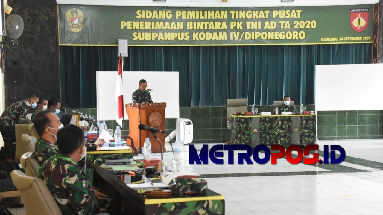 METROPOS.ID, MAGELANG – Sidang Pantukhir tingkat Subpanpus Caba PK TNI AD Umum Pria TA. 2020 Kodam IV/Diponegoro di Aula Jenderal Sudirman Dodik Belanegara Rindam IV/Diponegoro, Magelang, di pimpin langsung Pangdam IVDiponegoro Mayjen TNI Bakti Agus Fadjari, S.I.P., M.Si, Kamis (24/9/2020).