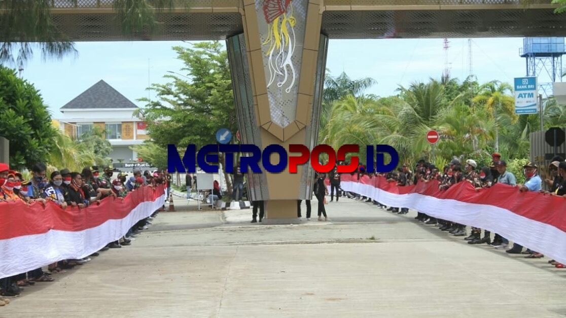 Mereka menggelar upacara bersama dan membentangkan 2 bendera merah putih raksasa sepanjang 28 meter dan 20 meter di Pos Kotis Skouw Distrik Muara Tami Kota Jayapura, Rabu (28/10/2020) kemarin.