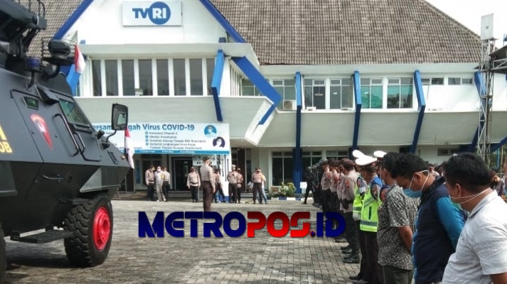 METROPOS.ID, DEMAK – Puluhan petugas Kepolisian mengamankan lokasi jalannya debat Cabup – Cawabup Kab. Pekalongan tahapan Pilkada 2020 yang tengah berlangsung di Stasiun TVRI Jawa Tengah yang berlokasi Pucanggading, Ds. Batursari, Kec. Mranggen.
