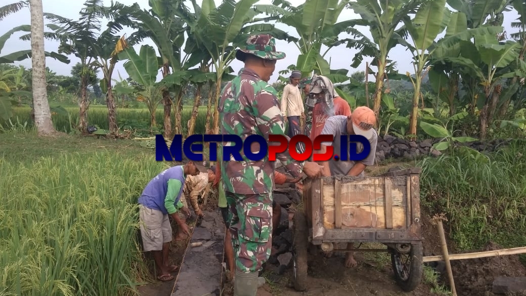 METROPOS.ID, BOYOLALI – Babinsa Sumber yang juga anggota Koramil 12/Simo (Kodim 0724/Boyolali) Sertu Hardiyono bersama -sama dengan masyarakat membuat jalan usaha tani (JUT). Hal ini di lakukan guna memudahkan akses jalan para petani di Ds. Sumber, Kec. Simo, Jum’ at (15/1/2021).