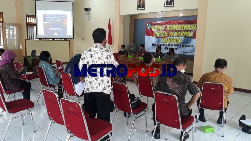 METROPOS.ID, SURAKARTA – Rakor Linsek (Rapat Koordinasi Lintas Sektoral) yang membahas tentang COVID -19 yang bertempat di Pendopo Kec. Serengan Jalan Veteran, Kota Surakarta di hadiri Danramil 03/Serengan (Kodim 0735/Surakarta) Kapten Inf Tri Sakti K bersama Muspika, Selasa, (19/1/2021).