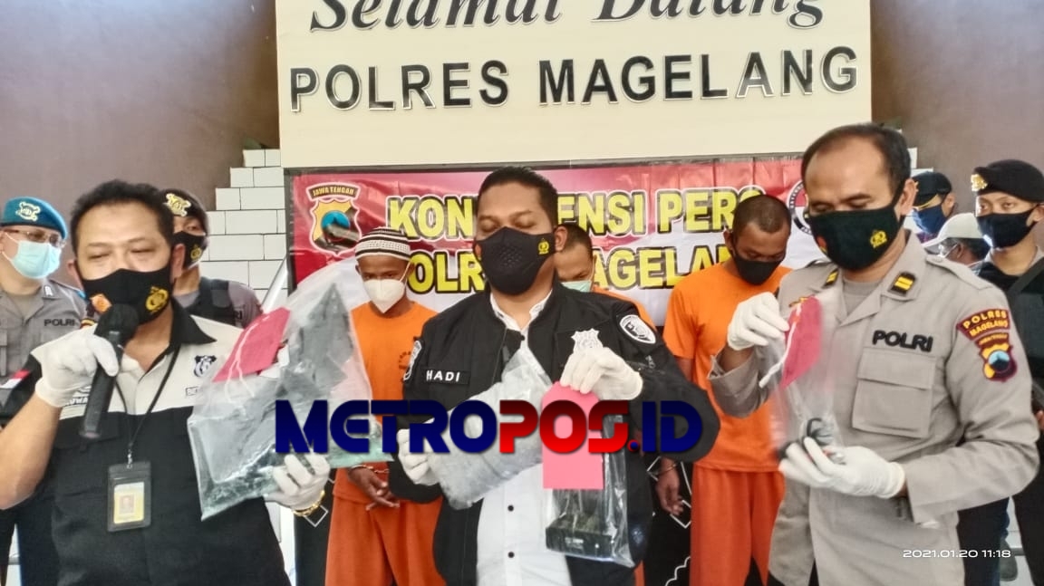 Dengan adanya kejadian tersebut selanjutnya Tim Resmob Polres Magelang melakukan serangkaian penyelidikan diwilayah Magelang dan Pada Jum’at (1/1/2021) pukul 11.00 wib Tim Resmob Polres Magelang berhasil mengamankan terduga pelaku dan barang bukti. Selanjutnya pelaku beserta barang bukti dibawa ke Kantor Polres Magelang guna penyidikan lebih lanjut.