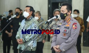 Kapolri Jenderal Listyo Sigit Prabowo bersama Kejagung ST Burhanuddin saat menyapa para awak media