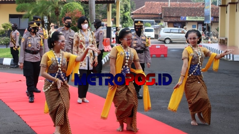 Tim Penilai WBK Mabes Polri saat di sambut dengan tarian di Polres Pekalongan