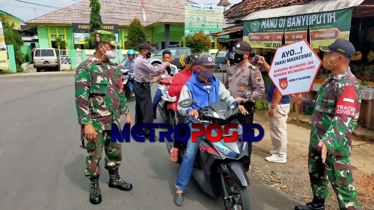 METROPOS.ID, BATANG — Petugas gabungan dari Koramil Jajaran Kodim 0736/Batang bersama Polsek jajaran Polres Batang dan Satpol- PP terus berupaya mencegah penyebaran Virus COVID – 19 dengan menggelar operasi yustisi secara rutin, kegiatan ini merupakan bentuk Penerapan Pemberlakuan Pembatasan Kegiatan Masyarakat (PPKM) Skala Mikro di wilayah binaan masing-masing.