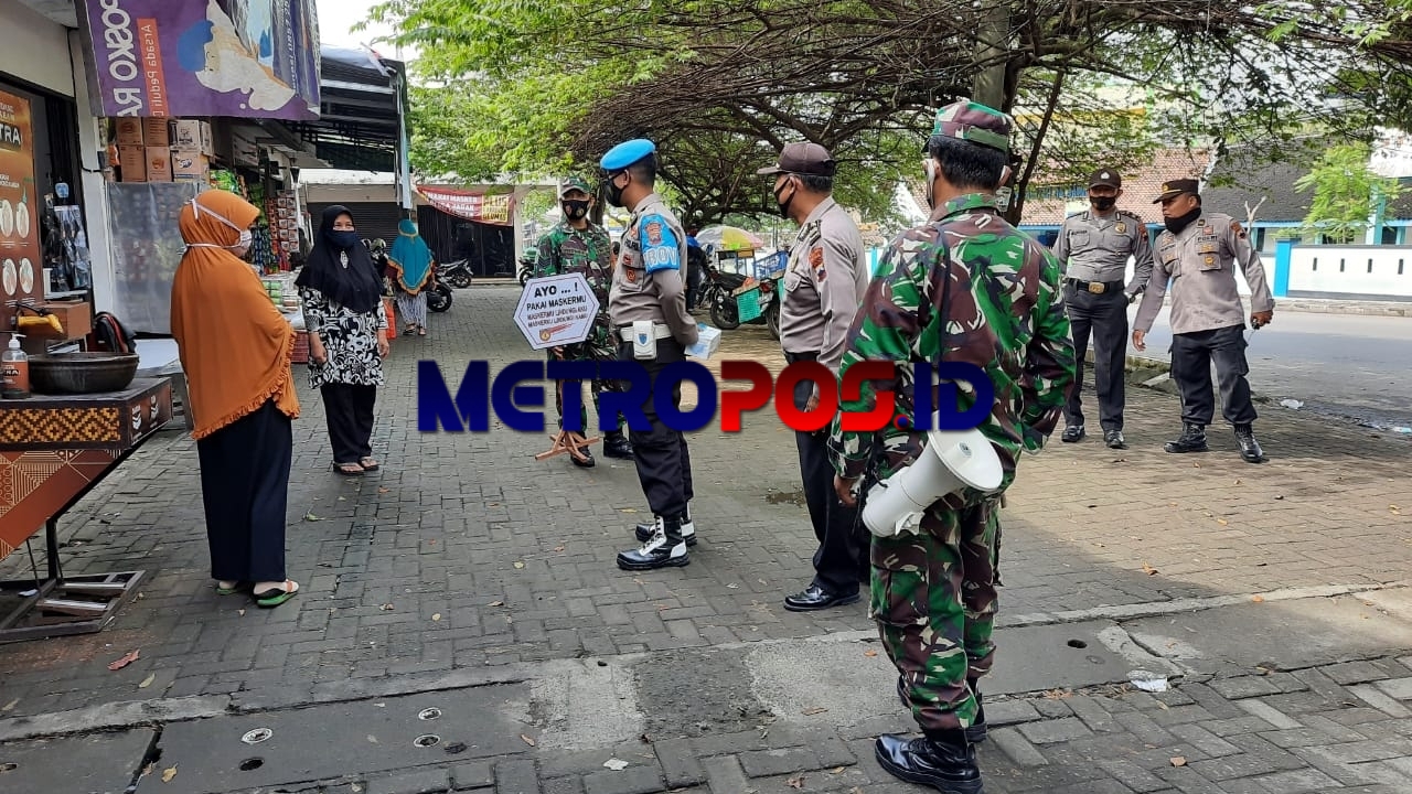 METROPOS.ID, BOYOLALI – Anggota Koramil 10/Sambi (Kodim 0724/Boyolali) yang dipimpin oleh Pelda Hadi Suryani bersama dengan anggota Polsek Sambi melaksanakan Operasi Yustisi dalam rangka PPKM Mikro di Pasar Sambi dan toko sembako yang berada di Dk. Tempursari, RT 04/ RW 02, Ds. Tempursari, Kec. Sambi. Hal untuk mendukung penegakan disiplin Prokes (Protokol Kesehatan), Minggu (7/3/2021).