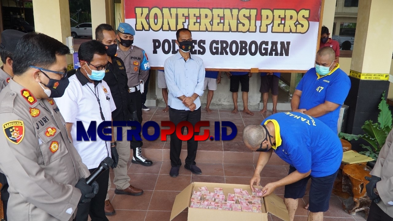 Pada kesempatan itu Kapolres Grobogan AKBP Jury Leonard Siahaan menyampaikan sesuai laporan, korban telah ditipu keduanya yang mengaku dapat menggandakan uangnya menjadi Rp 550 juta. Sehingga dari keterangan korban tersebut, kami langsung melakukan penyelidikan.