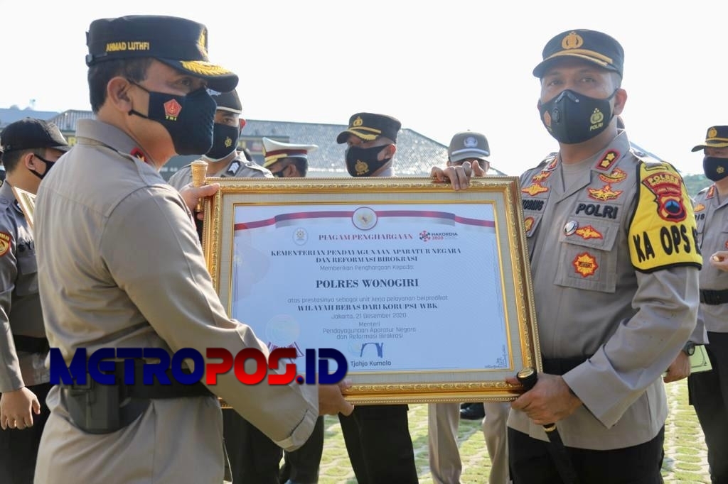 Penghargaan dari Menpan RB tersebut diterima oleh Kapolres Wonogiri AKBP Christian Tobing, SIK, MH, MSi secara virtual pada Senin (21/12/2020) tahun lalu. Sedangkan penghargaan Satker Inovasi Pelayanan Publik Terbaik Di Masa Pandemi Covid-19 di raih tahun ini pada Senin, (26/4/2021).