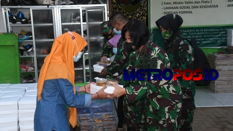 Dalam pembagian takjil ke panti asuhan hanya dihadiri sebagian para perwira dan anggota saja supaya tidak terjadi kerumunan di tengah pandemi Covid-19. (@wg/Dam/Red).