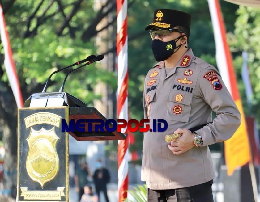 Kapolda Jateng Irjen Pol Ahmad Luthfi saat gelar pasukan Penanganan C -19 di Kompleks Alun-Alun Karanganyar, Kamis (8/7/2021).