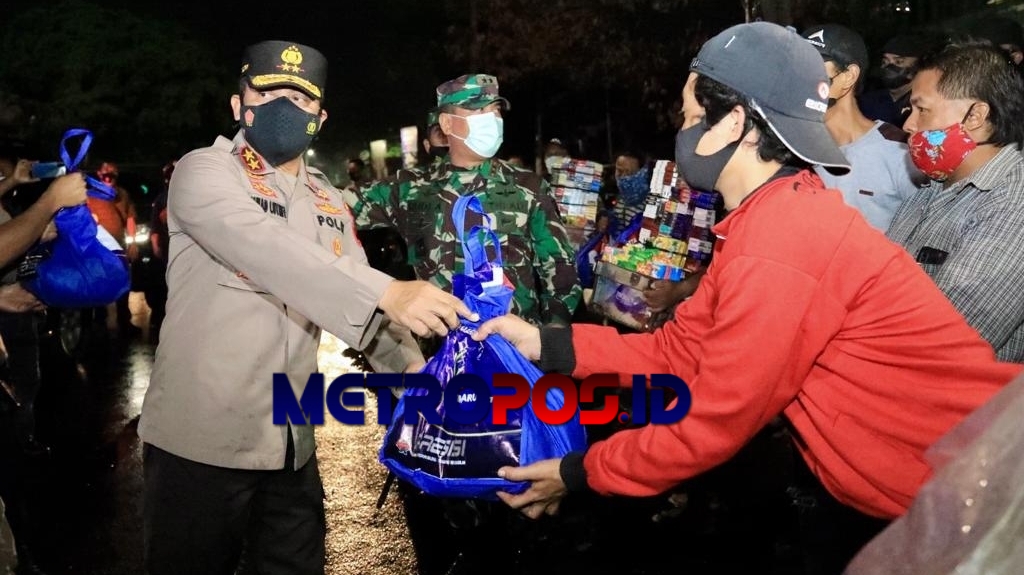 Kapolda Jateng Irjen Pol Ahmad Luthfi dan Pangdam IV Diponegoro, Mayjen TNI Rudianto saat memberikan bantuan usai apel malam (foto Bid Hms Polda Jateng)