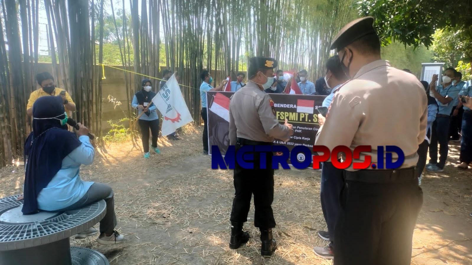 Karena aksi tersebut menimbulkan keramaian dan berpotensi penularan virus C -19 maka di bubarkan oleh aparat.