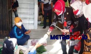 Bupati Grobogan Sri Sumarni saat menyerahkan bingkisan ke atlet yang mau berangkat ke Papua untuk laga di PON XX (foto istimewa)