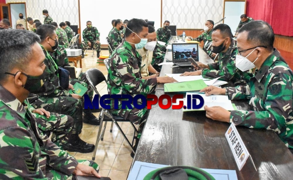 Metropos.id, Banyumas – Tim Current Audit Inspektorat Jenderal TNI AD yang dipimpin Brigjen TNI Sudi Prihatin, S.Sos selaku Ketua Tim Was Current Audit bersama rombongan melaksanakan pengawasan terhadap program kerja dan anggaran satuan jajaran Korem 071/Wk (Wijayakusuma), di Makorem 071/Wk, Sokaraja, Banyumas, yang di sambut Danrem 071/Wk Kolonel Inf Dwi Lagan Safrudin, S.I.P., bersama para Kasirem, Rabu (29/9/2021).
