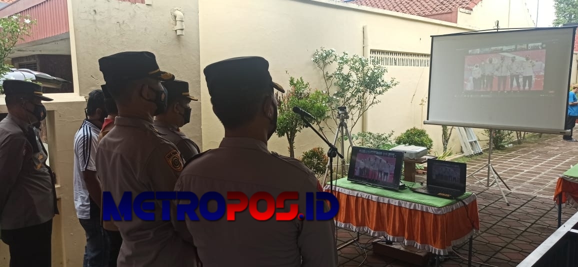 Kapolresta Pekalongan AKBP Wahyu Rohadi beserta jajarannya saat zoom meeting bersama Kapolri (Foto Kermit)