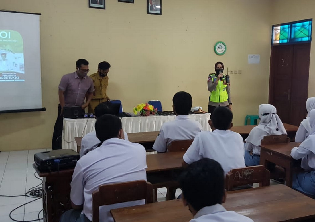 Hadir mewakili Satlantas Polres Sukoharjo, Ipda Niken, mengimbau kepada siswa-siswi SMK Kriya Sahid untuk menjadi pelopor keselamatan berlalu lintas dengan selalu mematuhi prokes guna mendukung percepatan penanganan penyebaran Covid- 19.