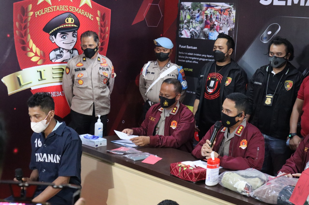 Pelaku pembunuhan saat di hadirkan dalam konferensi pers (Foto Restabessmg)