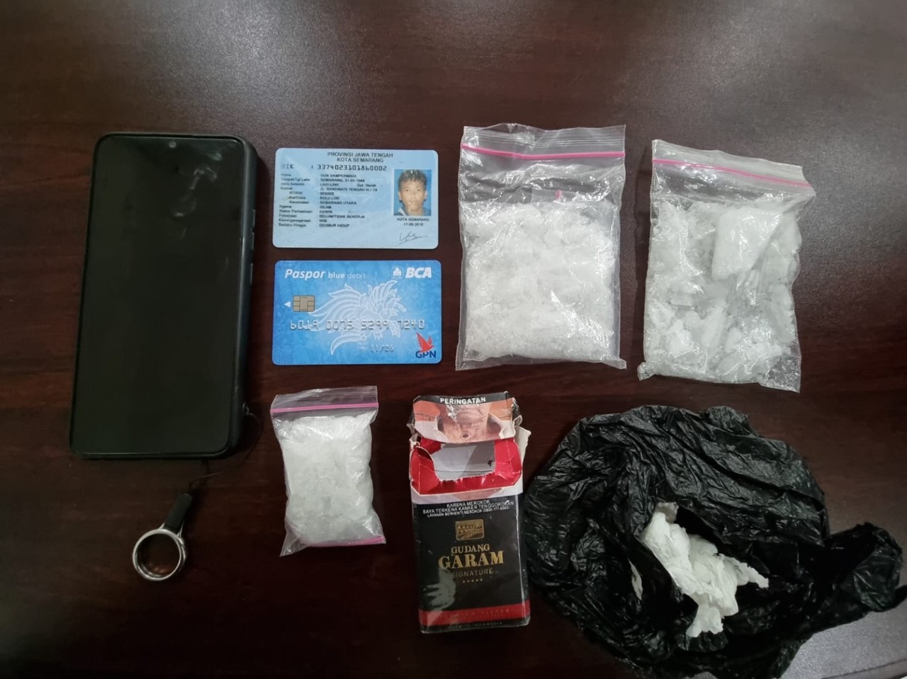“Hasil dari pengembangan ditemukan 2 paket sabu masing-masing seberat 50 gram. Ditaruh disuatu lokasi di jalan Bandarharjo Selatan (Semarang Utara),” jelasnya.