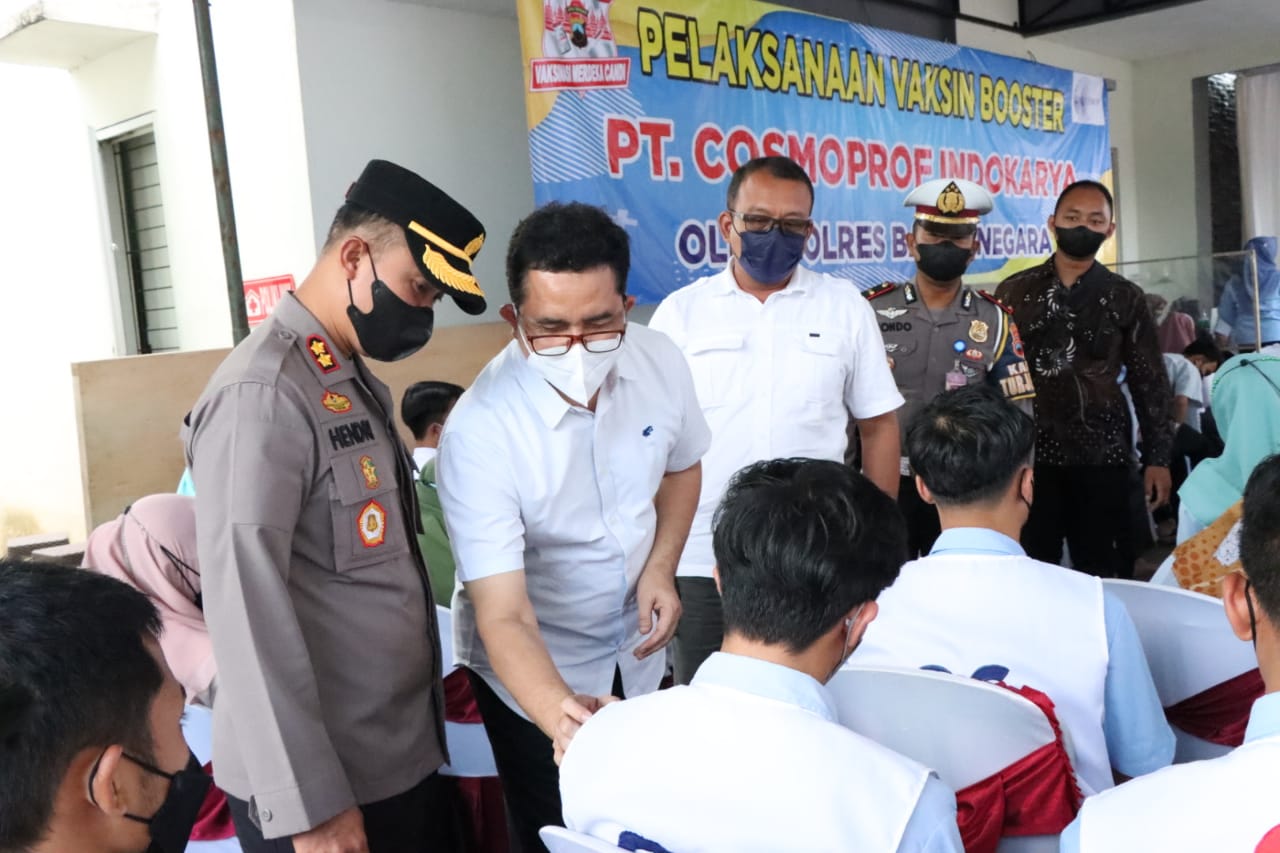 Sebelum mengikuti zoom meeting Kapolres Banjarnegara bersama PJU dan Manajemen PT. Kosmoprof berkesempatan meninjau langsung pelaksanaan vaksinasi dosis 3 (Booster) untuk ratusan karyawan PT. Cosmoprof Indokarya.