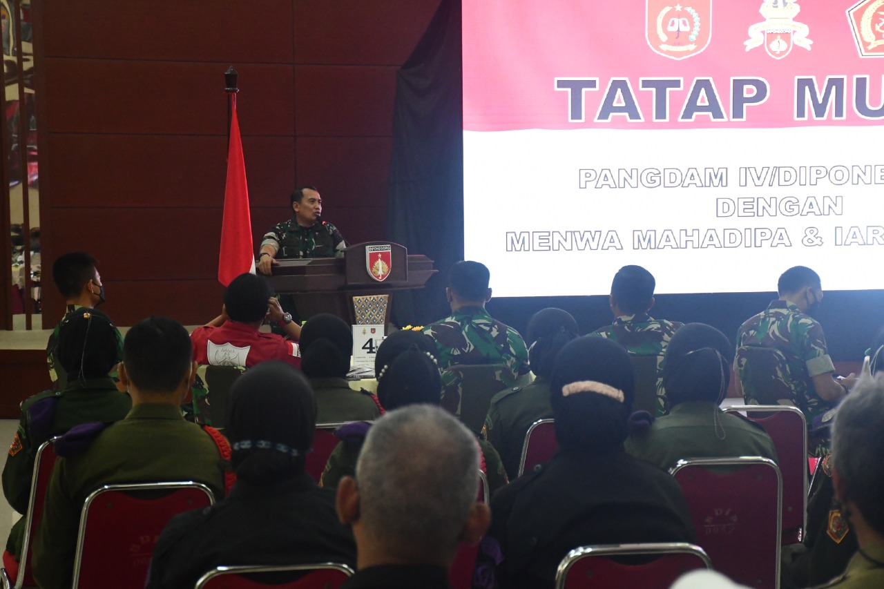 Nampak hadir Kasdam IV/Dip Brigjen TNI Parwito, Kapok Sahli Pangdam IV/Dip Brigjen TNI Kus Hariyono, Asrendam Kolonel Inf Wisnu Kurniawan, S.Sos., M.I.P., para Asisten, Perwira Liaison, Kabalakdam IV/Dip, para Dansat jajaran Kodam IV/Dip serta Ketua DPD IARMI. (@wg/Pendam4/Dip/Red)