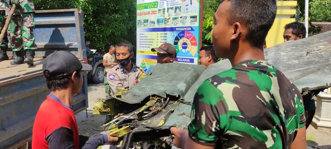 Salah satu serpihan pesawat yang berhasil dievakuasi (Foto Bidhmspoldajtg)