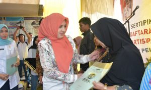 Bupati Fadia saat menyerahkan sertifikat tanah (Foto Kermit)