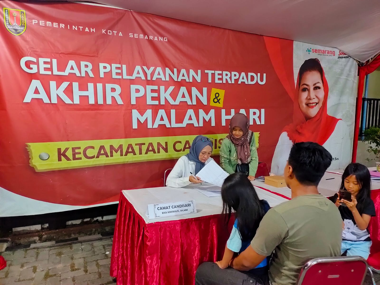 Tak terkecuali di Kec. Candisari. Kecamatan yang membawahi 7 kelurahan ini membuka layanan publik akhir pekan yang dimulai pukul 07.30-13.00 WIB dan dilanjutkan malam hari pukul 19.00-22.00 WIB.