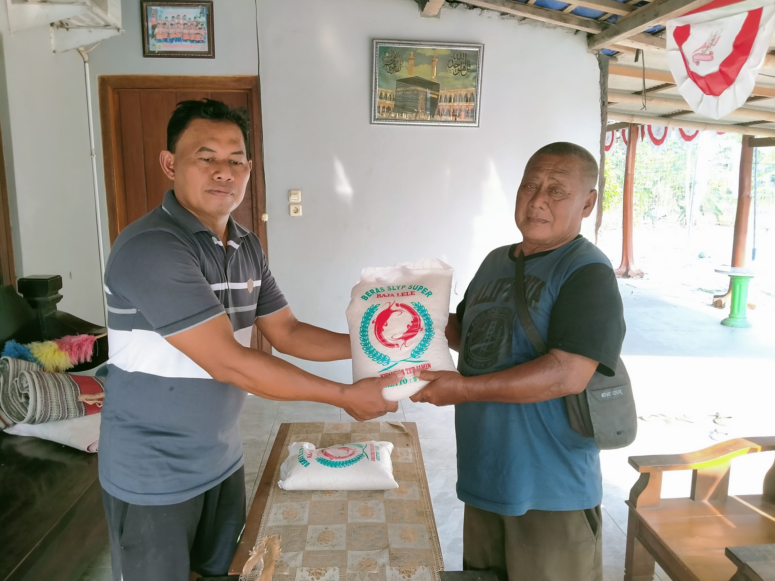 Kades Kuwaron Ali Musyafak saat membagikan beras ke warganya (Foto Wijaya)