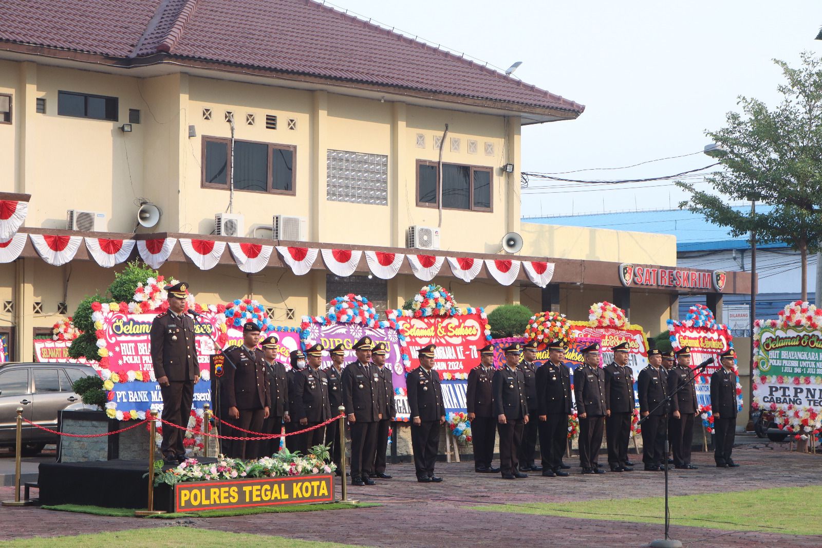 Upacara peringatan Hari Bhayangkara ke-78 di Mapolres Tegal Kota. (ft.humas).