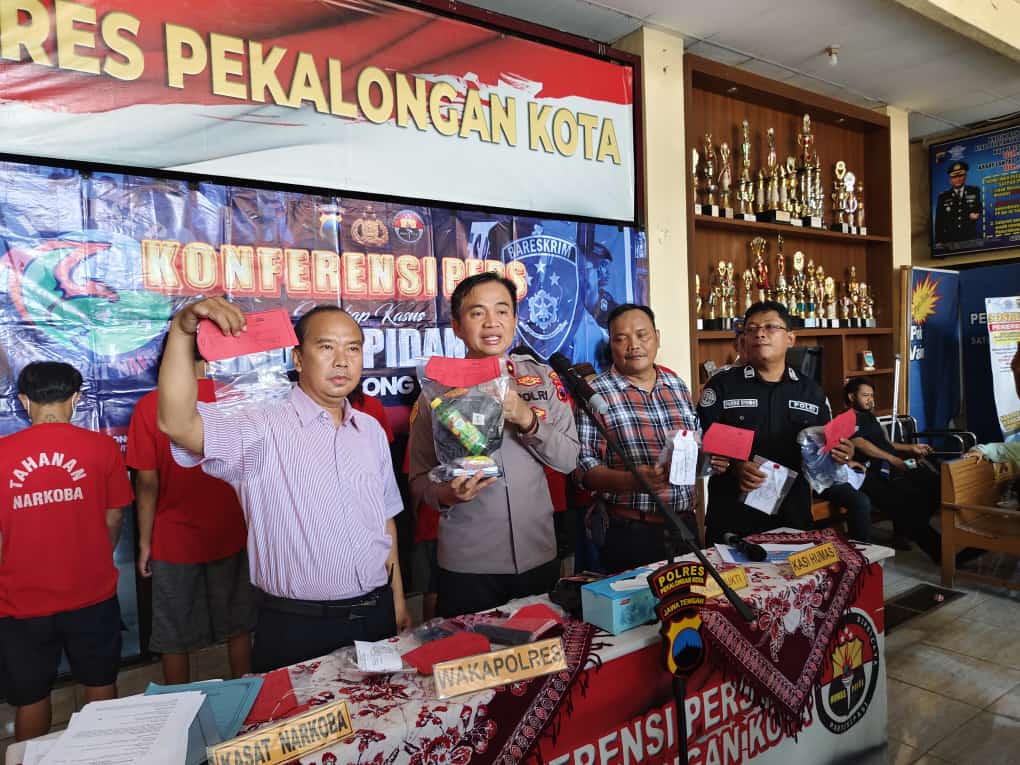 Wakapolres Pekalongan Kota Kompol Pujiono saat menunjukkan barang bukti (ft Mit)