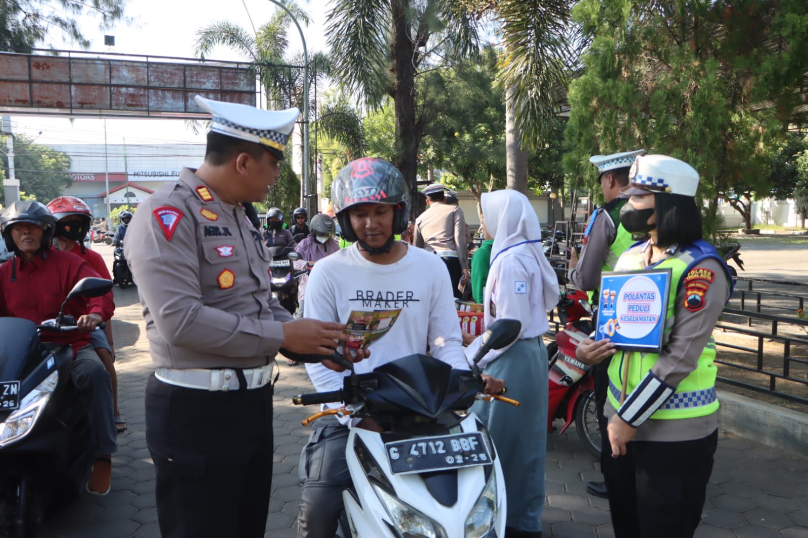 METROPOS.ID || TEGAL – Sukseskan pelaksanaan Operasi Patuh Candi 2024, Polres Tegal Kota terus berupaya mensosialisasikan tertib berlalu lintas dengan membagikan brosur.