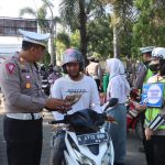 “Kegiatan ini masih dalam rangkaian pelaksanaan Operasi Patuh Candi 2024 di Polres Tegal Kota. Kali ini kita sengaja menyasar warga yang sedang menikmati Car Free Day. Sehingga memudahkan kita untuk berkeliling menyapa, mengimbau dan mengajak masyarakat untuk tertib berlalu lintas. Dengan harapan pesan-pesan tentang kedisiplinan dan keselamatan berlalu lintas bisa langsung kita sampaikan kepada masyarakat,” ungkap Kasat Lantas.