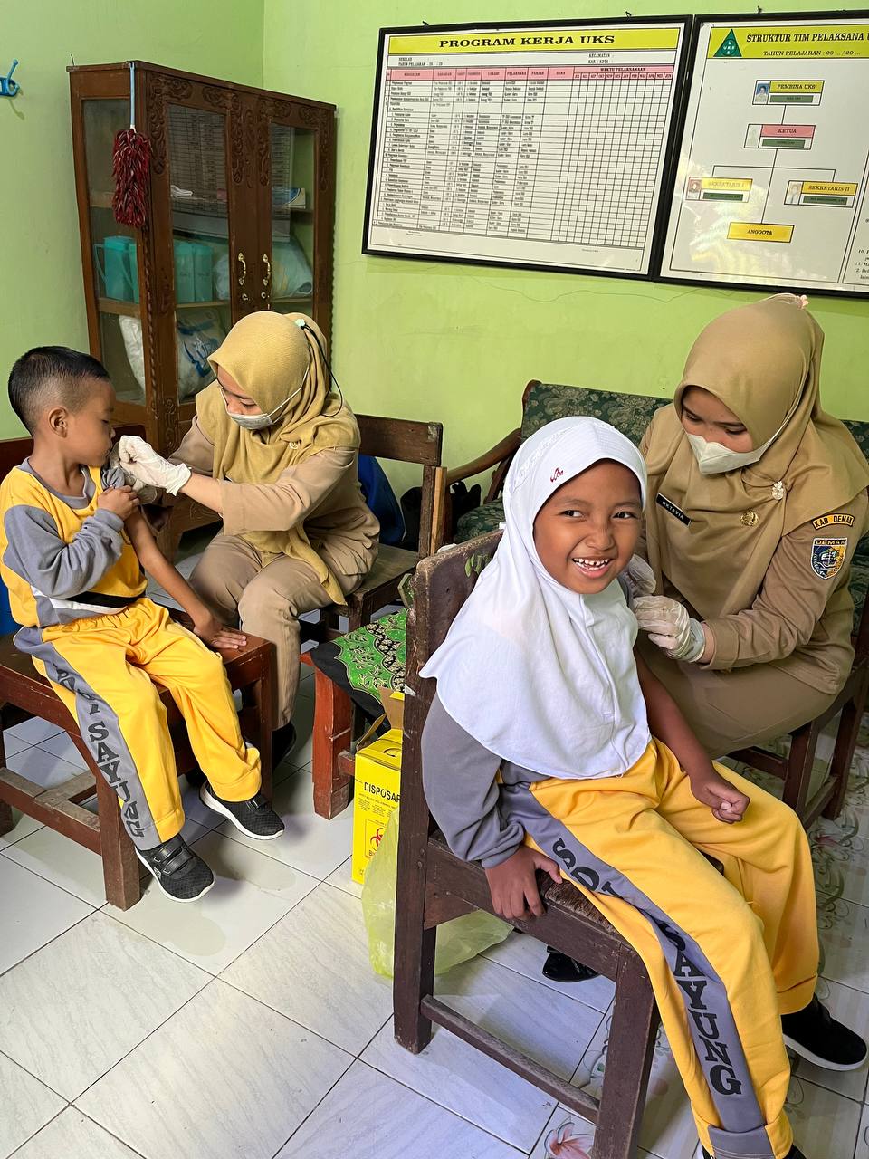 Kabar baiknya, dari 27 puskesmas yang ada di Kab. Demak, tidak ada laporan terkait kejadian ikutan pasca pemberian vaksinasi.