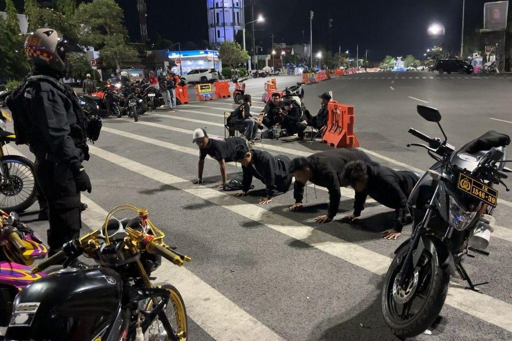 “Mayoritas para remaja yang menggunakan knalpot brong. Mereka kita berikan teguran untuk push up. Tujuannya agar mereka para pengendara yang berknalpot brong merasakan efek jera,” ungkap AKP Bambang.