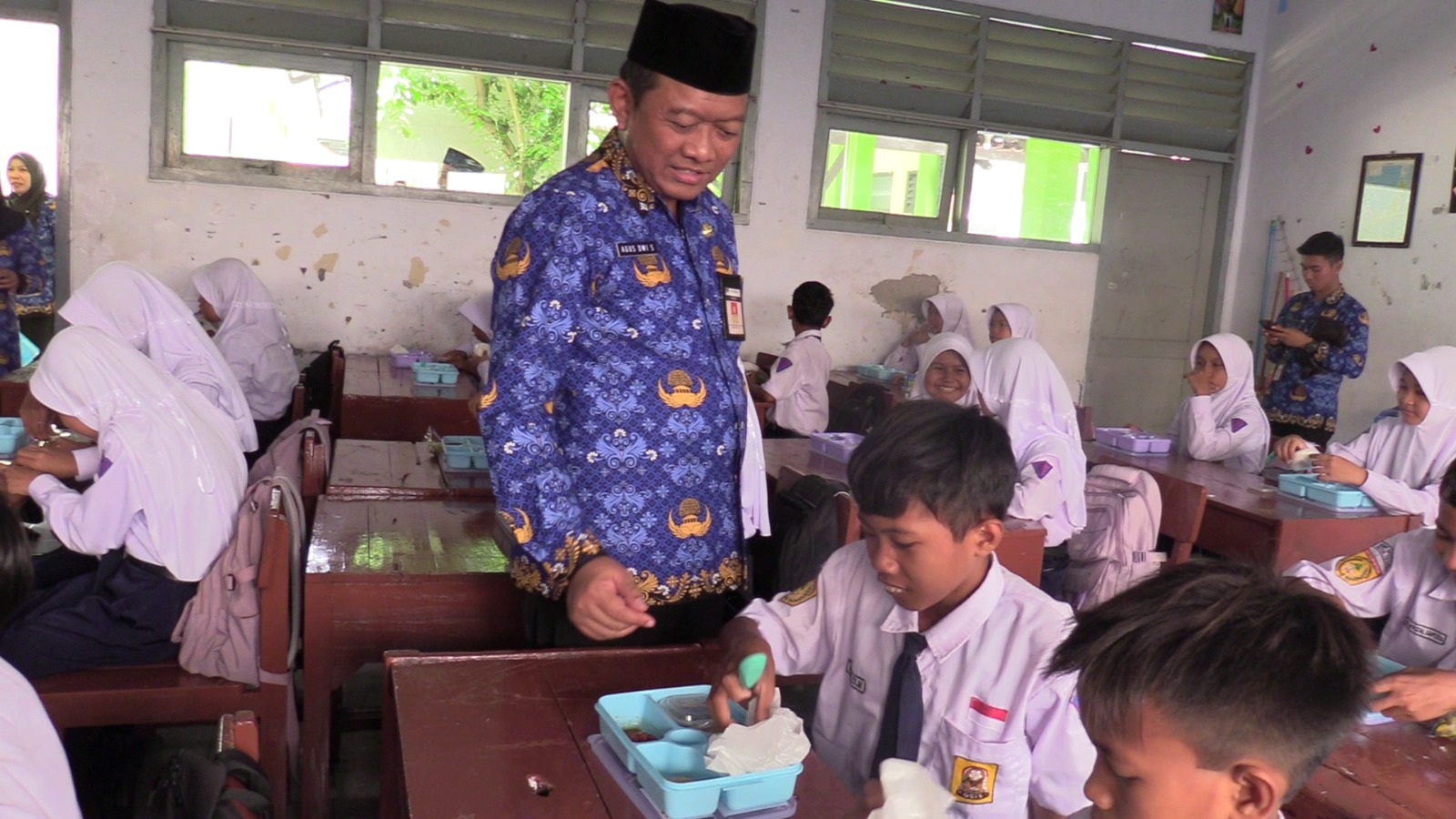 Foto : Sekda Kota Tegal, Agus Dwi Sulistyantono, saat monev uji coba MBG hari pertama di 2 sekolah (ft.humas).
