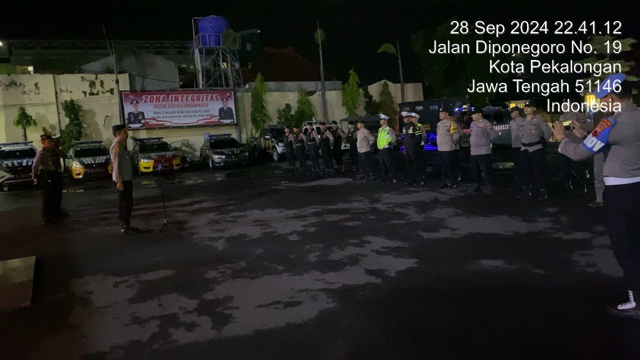 Patroli Skala Besar gabungan Satuan Fungsi dan Polsek dilaksanakan secara bersamaan dan didahului Apel pengecekan Personel dan Sarana prasarana yang digunakan, dipimpin Wakapolres Kompol Pujiono, S.H.,M.M., bertempat dihalaman Mapolres Pekalongan Kota.