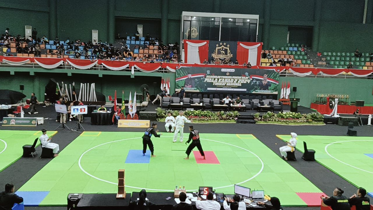 Kejuaraan Pencak Silat Piala Kasad TA 2024 yang digelar di GOR Laga Tangkas Pakansari, Cibinong, Kota Bogor. (ft pendam4/Dip)