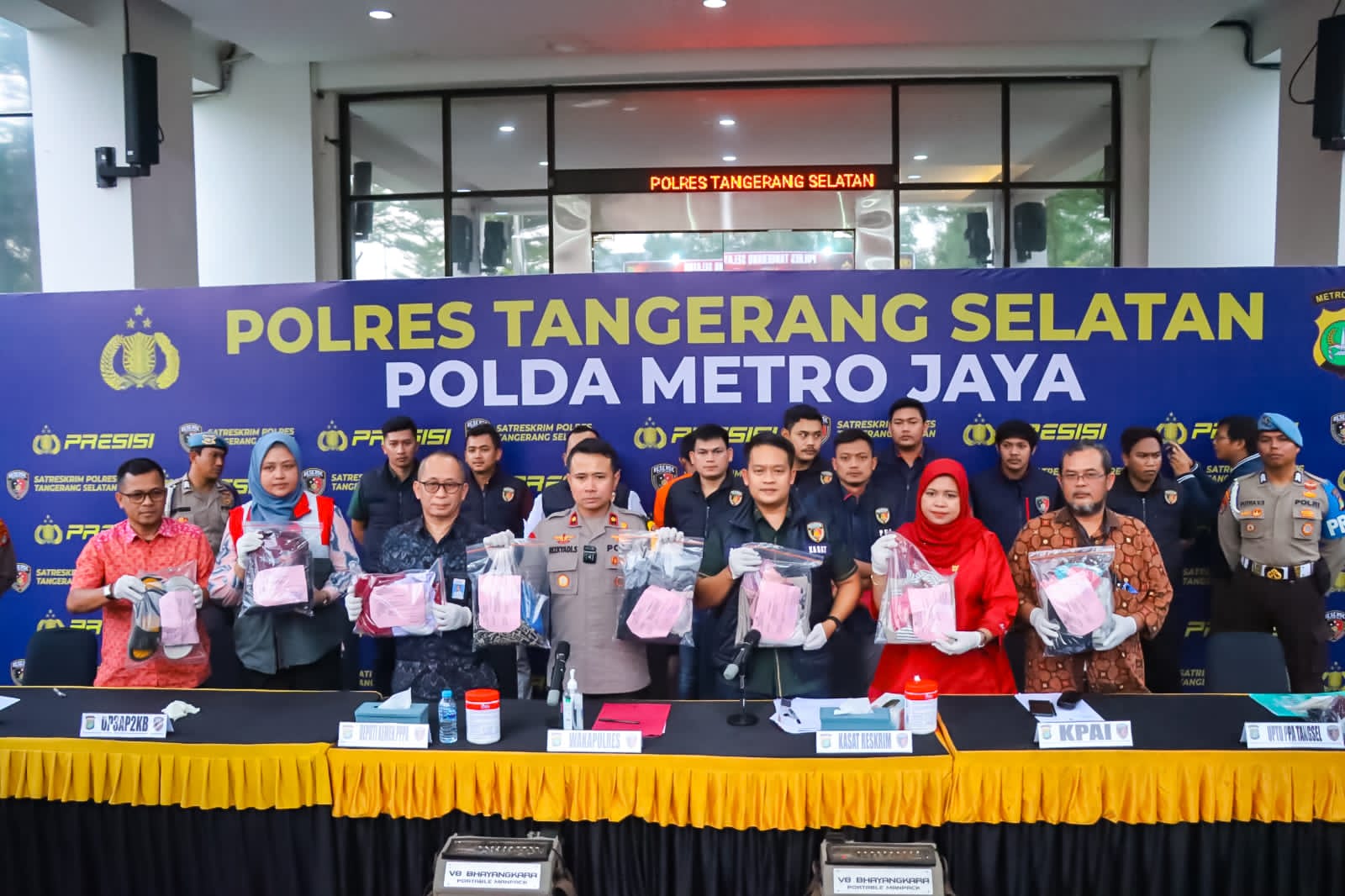 Wakapolres Tangsel Kompol Rizkyadi Saputro, S.I.K., saat menunjukan barang bukti (ft Bahri)
