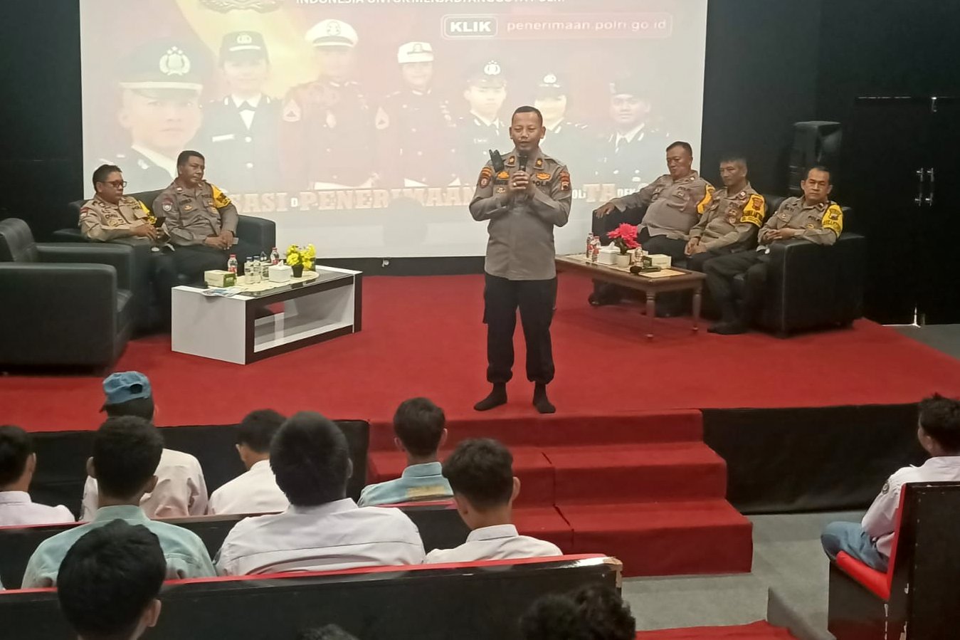 Foto : Kapolsek Tegal Timur, Kompol Suratman memberikan sosialisasi penerimaan anggota polri. (ft.humas).
